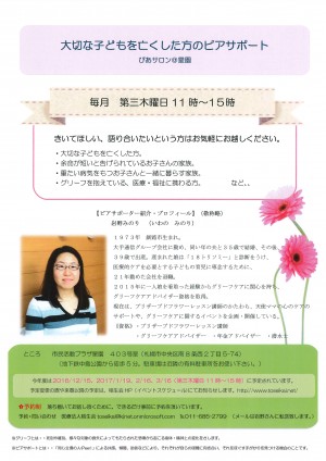 New: 2017年春からは、臨時あるいは出前ぴあサポート(ご自宅や最寄りのカフェなどで開催)も可能です。事前にご相談ください。